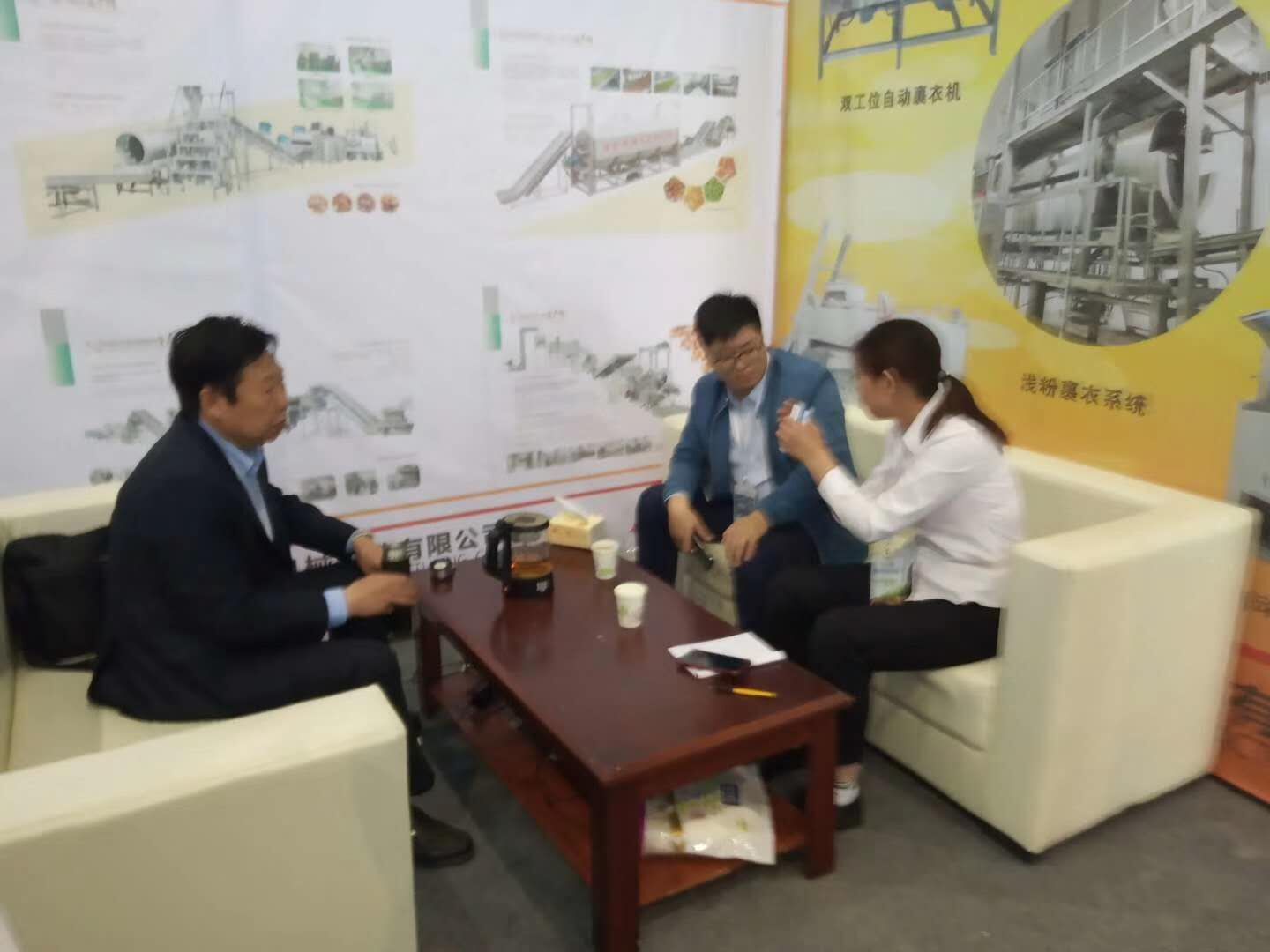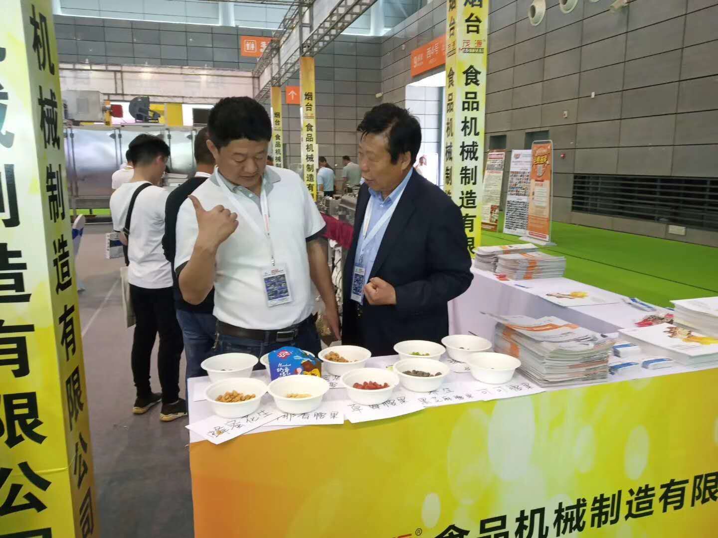 第13屆全國堅果炒貨食品展,我們茂源公司十幾萬的參展費用,物超所值;雙工位自動裹衣機的現場宣傳效果比較佳,意向客戶六十多個,期待生產線的方案設計。