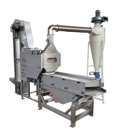 帶式半粒機(jī)組是將經(jīng)烘烤/干燥的過的花生米,進(jìn)行脫皮-分選-吸皮-篩選-去芽的設(shè)備。主要應(yīng)用于花生醬、花生糖、花生奶/露、花生碎等產(chǎn)品的前期處理。